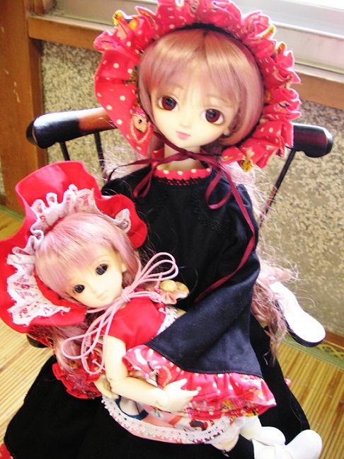 ※友人島野理緒氏から借りた文化人形服(朱葩は風味)2着を借りて着る朱葩と藍梨子。※