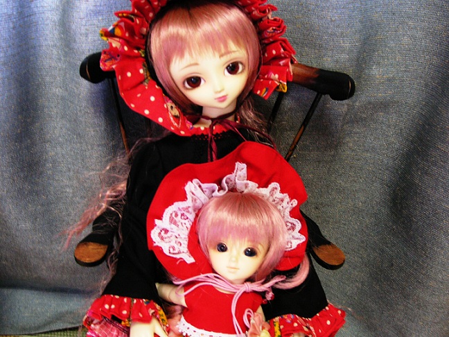 ※友人島野理緒氏から借りた文化人形服(朱葩は風味)2着を借りて着る朱葩と藍梨子。※