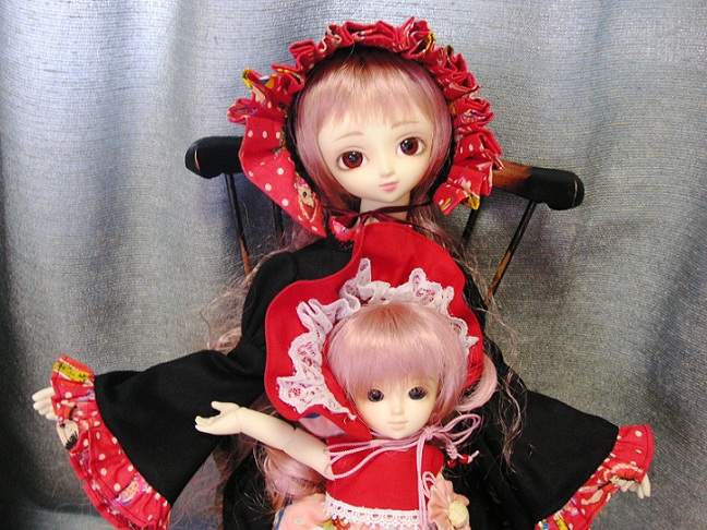 ※友人島野理緒氏から借りた文化人形服(朱葩は風味)2着を借りて着る朱葩と藍梨子。※