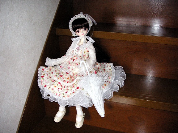 日傘さして微笑み。