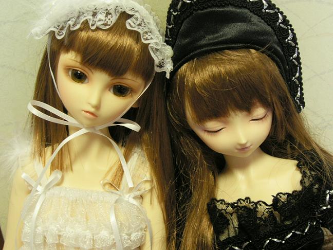絹花には夕凪のデフォルト服をきせ、夕凪には眠りミミのデフォルト服(朱葩の)を着せました。